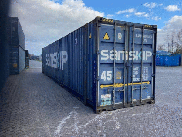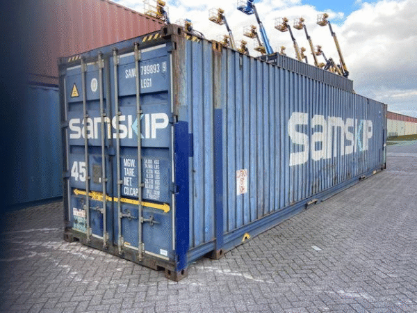 Le container 45 pieds High Cube d’occasion est idéal pour le transport maritime, le stockage et d’autres aménagements variés. Solide et conçu pour résister à des conditions d’utilisation exigeantes, il se distingue par sa structure en acier Corten, ses parois en tôle ondulée et ses longerons, garantissant ainsi une solution logistique fiable et durable.
